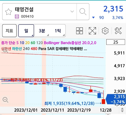 태영건설의 올해 마지막 주식장에서 주가는 2035원으로 마감을 했습니다.